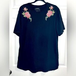 Pacsun Los Angeles Men’s Scallop Fit T-Shirt - Sz. XL Black - Embroidered Roses