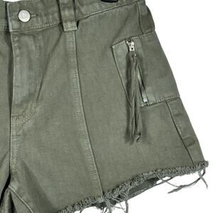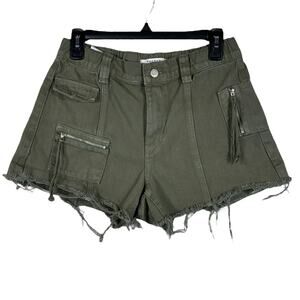 Pacsun Medium Jean Cutoff Cargo Shorts Hi-Rise Zip-Fly Pockets Frayed Hems Green