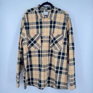 Pacsun Mens Tan Black Plaid Flannel Shirt Long Sleeve Button Down Cotton Large