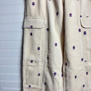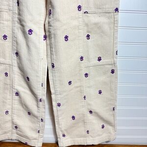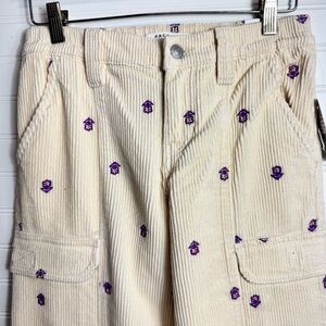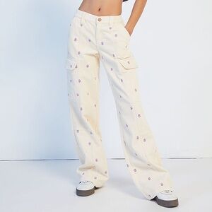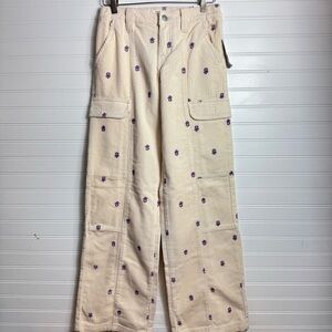 Pacsun Off White Embroidered Corduroy Low Rise Puddle Pants Wide Leg Sz XS