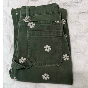 Pacsun Olive Green Flower Baggy Carpenter Denim Jeans
