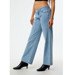 Pacsun Pacsun Low Rise Wide Leg Jeans Light Wash Silver Chain Belt Size 24 Baggy