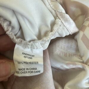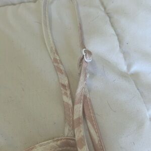 Stylish pink and white graphic tank top. Features unique design with thin straps. Hundred percent polyester. Tie in back.