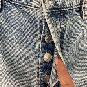 Fabric good condition, button fly, faint mark back right