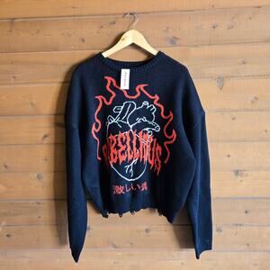 Pacsun Rebellious Flame Cropped Sweater M NWT Distressed Hem Woven Heart Grunge
