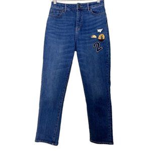 Pacsun Retro Jeans Embroidered Patches Women's Size 26 Cropped Stretch Denim