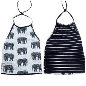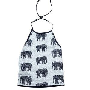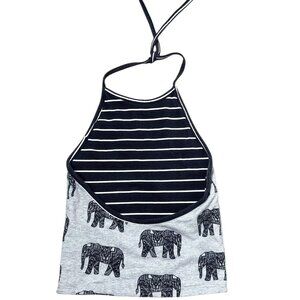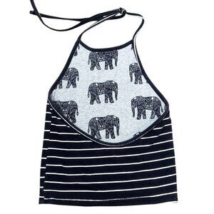Pacsun Reversible grey, black and white elephant and striped halter top.