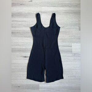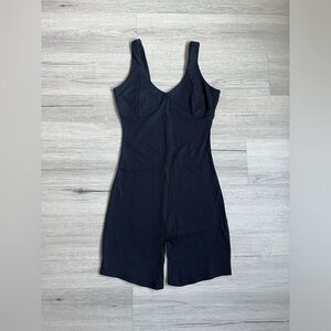 Ultra-flattering and chic athleisure style can be yours this season when you snag the Ribbed Corset Romper from Est. PAC 1980. This romper features a corset-style bust, fixed straps, a scoop neckline, and a ribbed fabrication.
