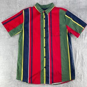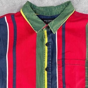 Pacsun Shirt Men Medium Multicolor Striped Cotton Pleated Short Sleeve Button-Up