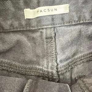 Get ready for any occasion with these PacSun shorts in size 26. The black denim material and frayed hem create a trendy look, perfect for a festival or casual outing. The zip closure and high-rise waist provide comfort and convenience, making these shorts ideal for walking, going to the beach, or even school.