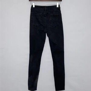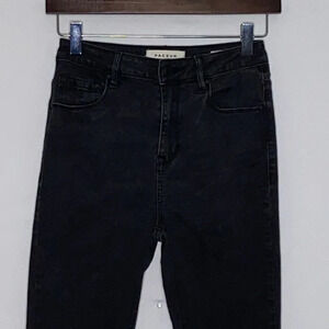 Pacsun Super High Rise Skinniest Acid Wash Black in a size 25. Good pre-owned condition. Coloring is off on the lower left leg, shown in pic. Stretch, 5 pocket, zip fly with button closure, extra skinny fit, lightweight denim. Approximate measurements: 12 1/2" waist, 10 1/2" rise, 28" inseam.
