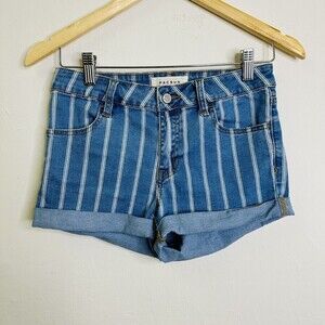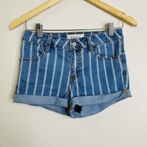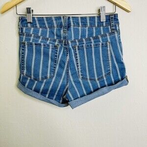 Pacsun Super Stretch Shortie Short 27 Blue Stripe Denim Rolled Cuffs High Rise