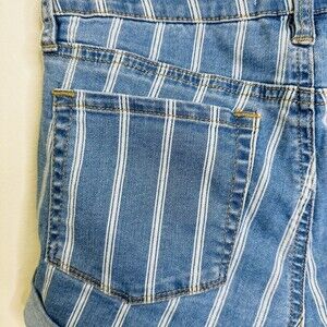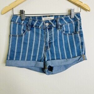 Pacsun Super Stretch Shortie Short 27 Blue Stripe Denim Rolled Cuffs High Rise.