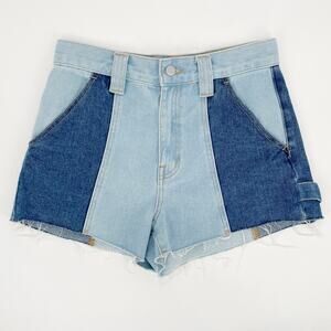 Pacsun Sz 26 High Rise Festival Two-Tone Colorblock Raw Hem Frayed Denim Shorts