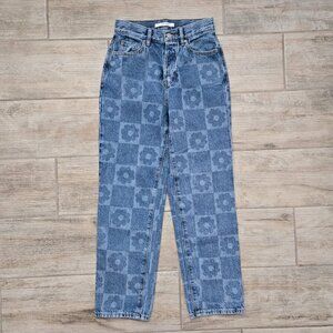 Pacsun Unique Floral Geo Square Jeans Women's High Rise Straight Button Fly.