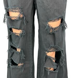 Pacsun Women's Black Baggy Distressed Ripped Wide Leg High Waist Denim Jeans 28