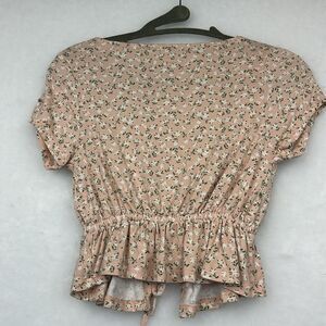 Pacsun Womens Floral Print Peplum Pink Crop Top Tie Front Sz S Short Sleeves