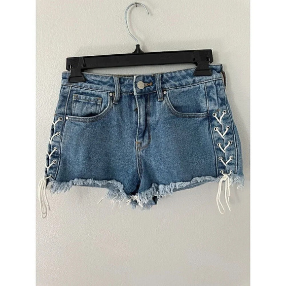 Pacsun Women's High Rise Shorts Blue Cut offs Tie on Sides 100% Cotton Size 25