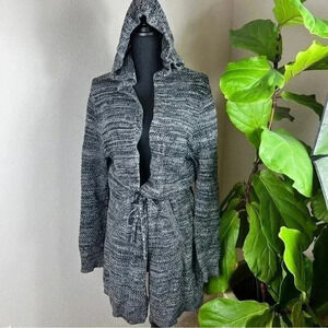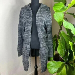 Pacsun Women’s Hooded Long Cardigan Gray White Sweater Size Small Belt