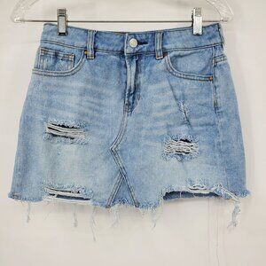 Pacsun Women's Light Wash Raw Hem Distressed Denim Jean Skirt Size 25