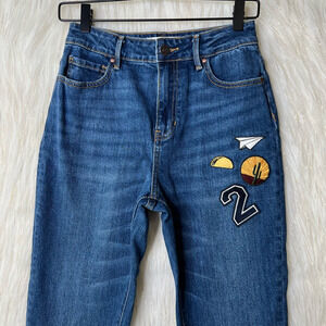 Pacsun Womens Retro Jeans Blue Medium Wash High Rise Stretch Patches 25