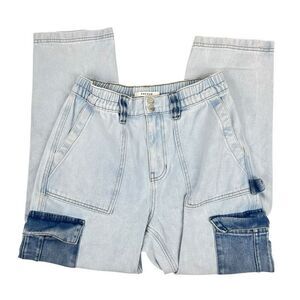 Pacsun Womens Two Tone Patch Cargo Style Wide Leg Elastic Waist Jean Medium NWOT