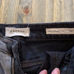 Black distressed high-rise skinniest jeans with raw hem only worn a couple of times. Size 23 inseam is 23” with no visible flaws