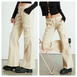 Pacsun pearl low rise cargo bootcut pants in light tan
