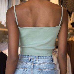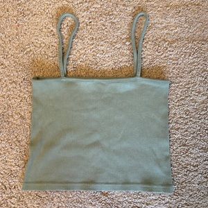 Brandy Melville/Pacsun sage green cropped tank top with thin straps, ribbed fabric, and square neckline. Worn once, in perfect condition.