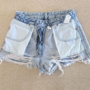 Pacsun High Rise Festival Medium Wash Distressed Jean Shorts - Size 26