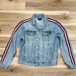 Pacsun LA Denim Jacket Distressed Trucker Red White Blue Trim Men’s Medium