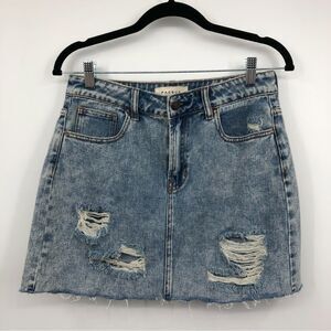 PacSun vintage wash denim jean skirt distressed destructed. Size womens 26 = Small US 5/6.
