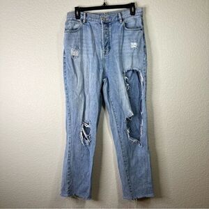 Pacsun Womens High Rise Straight Jeans Destroyed Light Wash Denim Blue Size 28