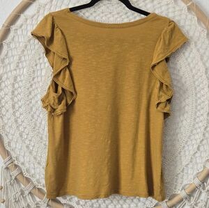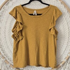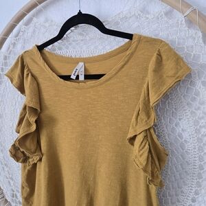 Pact 100% Organic Cotton Chai Luna Ruffle Sleeve Tee Mustard Yellow Boho Size M