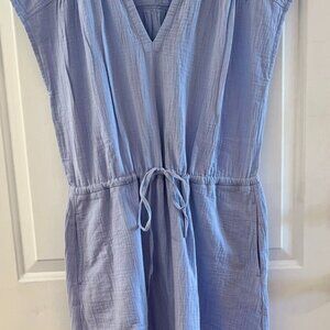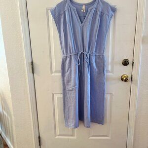 Pact 100% Organic Cotton Cornflower Blue Costal Double Gauze Midi Dress Sz Sm