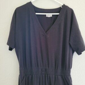 Stylish black jumpsuit by Pact. Features short sleeves and a V-neck. Perfect for any occasion.