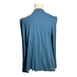 Discover the effortless style of the Pact Blue Cardigan, crafted with a lightweight knit that drapes elegantly. Its open-front design and asymmetrical hemline offer a chic waterfall effect, perfect for versatile layering.