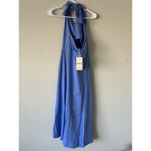 Elegant blue midi dress by Pact. Features a halter neckline and flared skirt. Perfect for any occasion.