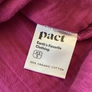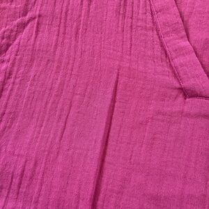 Organic cotton gauze top in a deep pinkish shade. V-neck. Cuffed sleeves and slits at the hem. Relaxed fit. Size XS/S. Measurements are included in the pictures. Washed once and never worn. Perfect lightweight summer staple.