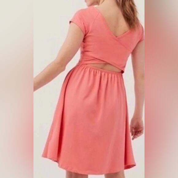 Pact Cross Back Coral Pink Organic Cotton Mini Dress Pockets Size XS