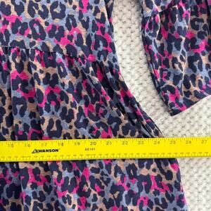 Pact Dress Womens S Purple Chetah Scoop Neck Elbow Flare Sleeve Knee Length