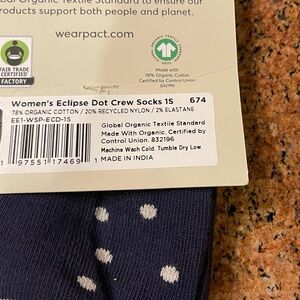 Pact Eclipse Dot Premium Crew Socks Two Pair NWT! Retail: $24 Women's Shoe Size 6-10. Brand New! Never Worn or Tried on. Free of odors, stains, pulls, pilling, holes or any other flaws.
