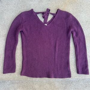 Pact Fisherman Knit Tie Back Sweater in Purple Size Medium