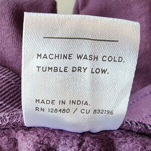 Pull-on style flat front sweat shorts - shade of purple. elastic & drawstring tie waist. Made of a sweatshirt like fabric. Material has a stretch. 100% Organic Cotton. Made in India.