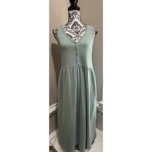 Pact Maxi Dress Womens S Slub Knit Organic Sage Green Henley Tank Dress Comfy