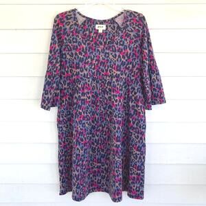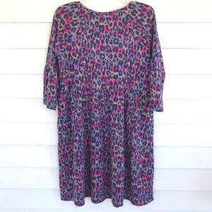 Pact NEW Rainbow Leopard Empire Waist Pocketed 3/4 Sleeve Knit Mini Dress S