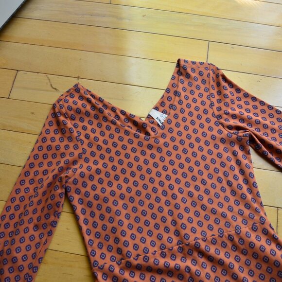 Pact Orange and Black Geometric Fit and Flare 3/4 Sleeve Dress Size M