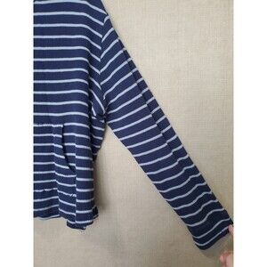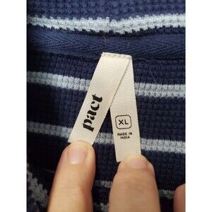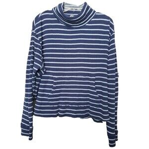 This is a Pact Organic Cotton Blue Striped Cowl Neck Waffle-Knit Kangaroo Pocket Shirt XL