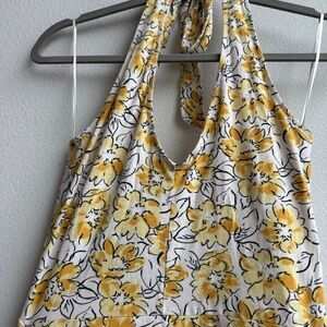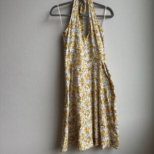 Pact Organic Cotton Fit Flare Halter Dress Reverie Yellow Floral Size Small