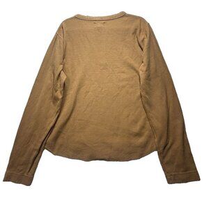 Pact Organic Cotton Men's Waffle Knit Henley Long Sleeve Shirt Sz L Brown Sugar